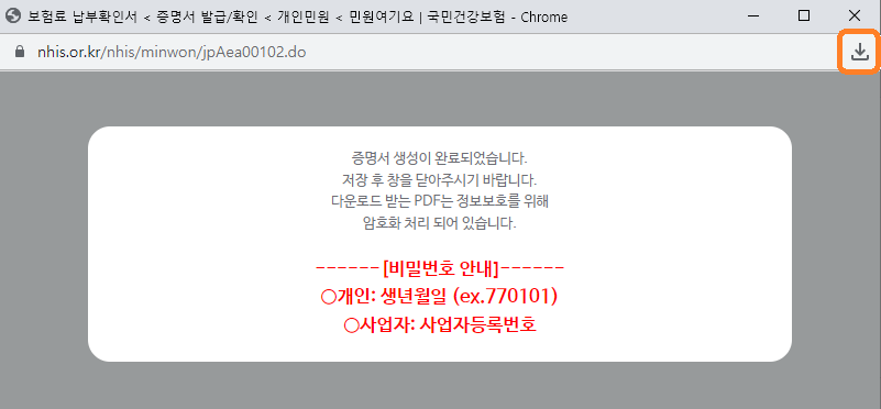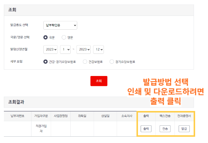 3) 조회결과에서 위 본문내용과 동일하게 발급!