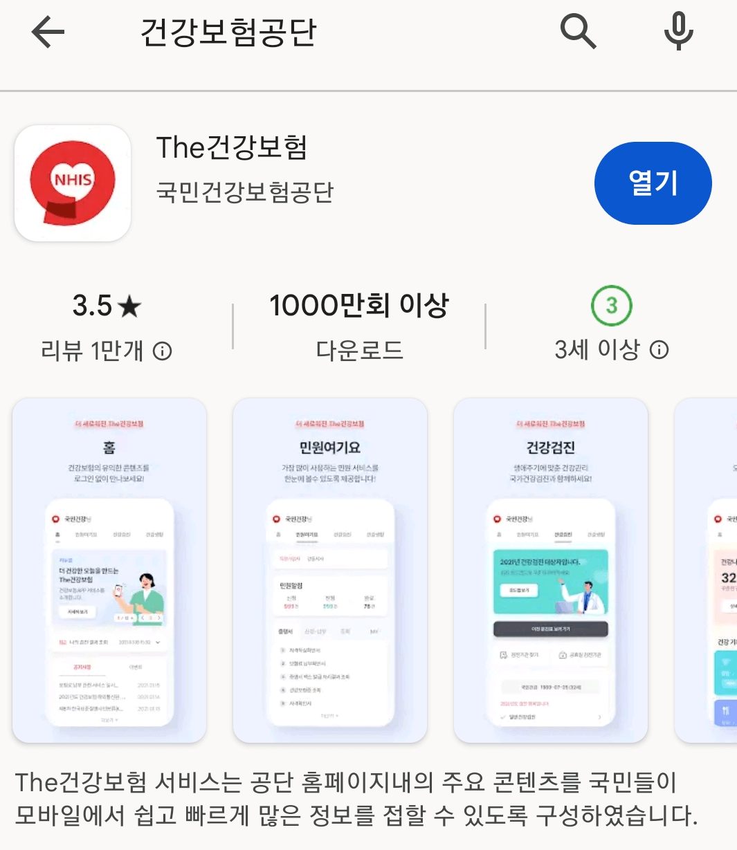 1) 플레이스토어 또는 앱스토어에서 "The건강보험" 어플 설치