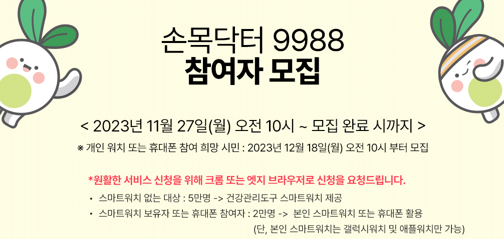 ① 스마트워치 없는 대상 5만명: 2023. 11. 27.(월) 오전 10시부터 선착순 모집 - (모집종료)