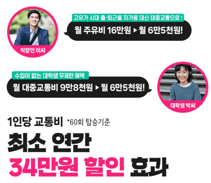 - 1인당 연간 교통비 최소 34만원 할인 효과!