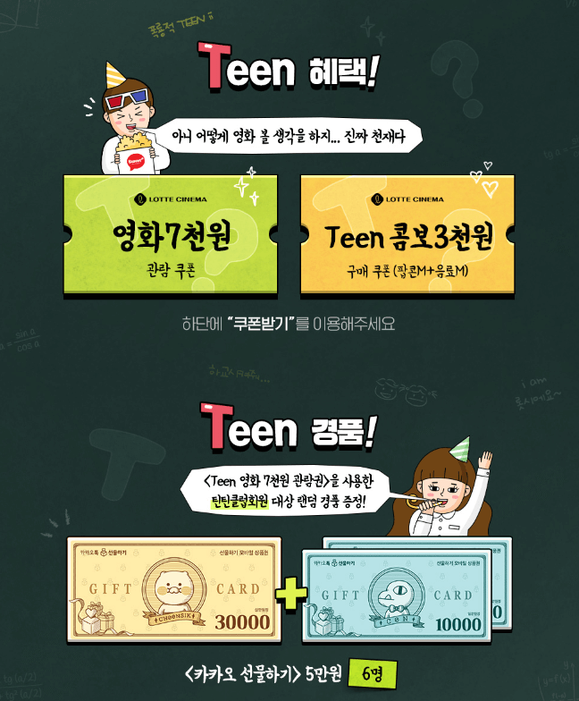 롯데시네마 - 영화 7,000원과 Teen콤보 3,000원