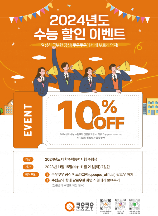 2024 수능 수험생 여러분 수능 고생 많으셨습니다. 고생한 만큼 즐겨야겠죠?