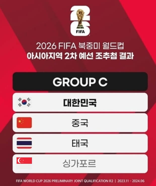 - 싱가포르가 괌과의 경기에서 승리하면서 C조의 조편성이 완성되었습니다.